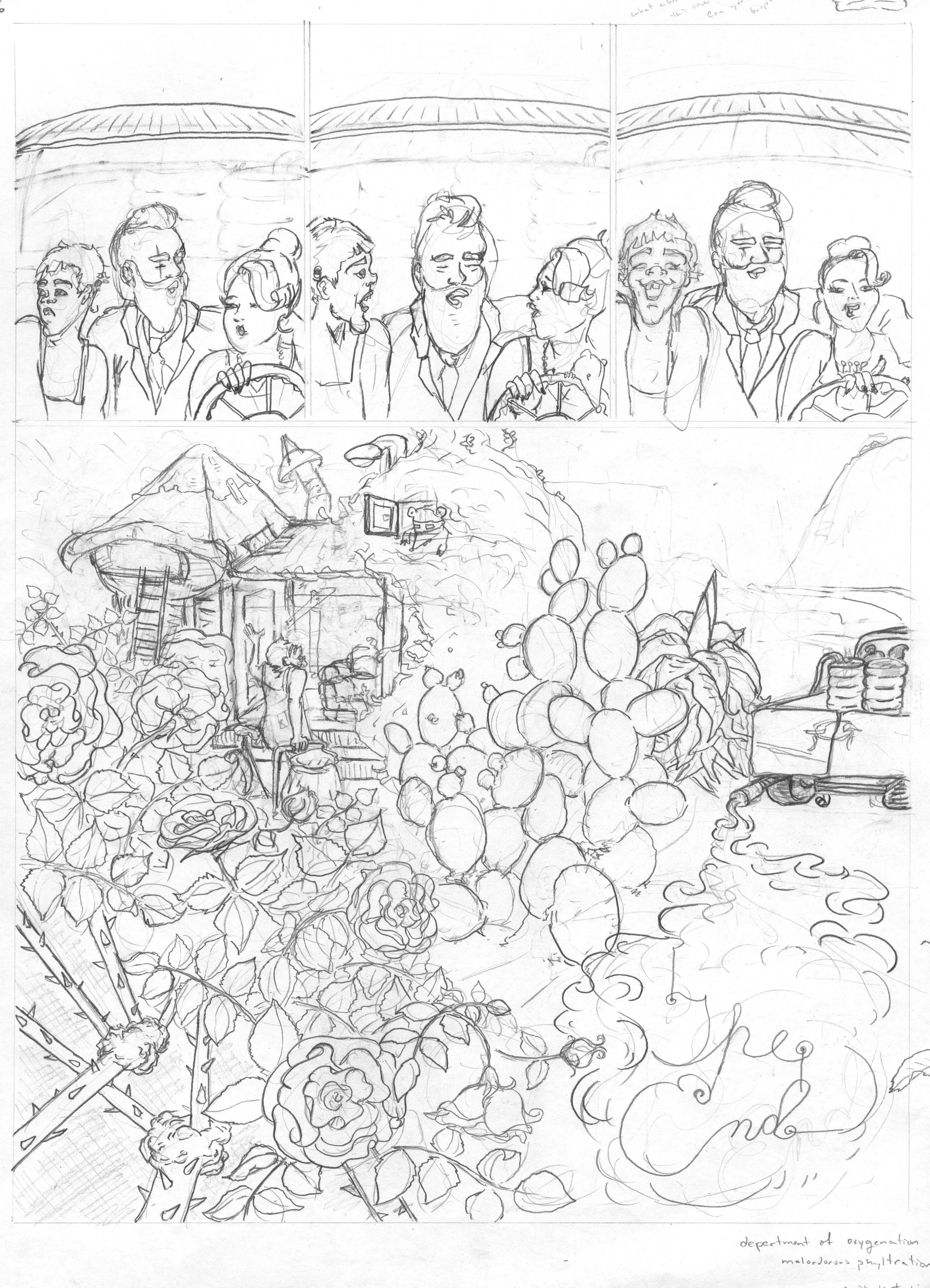 I look back at the pencils (now traced, watercolored and lined over with pen) and think they look much better than the finalized pages: more lively, organic and tactile.